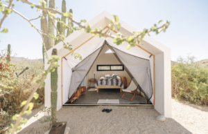 The accommodation spaces range from simple tents to glamping tents and cabanas.